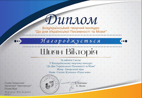 Шиян Вікторія ІІ місце в Міжнародному конкурсі з української мови
