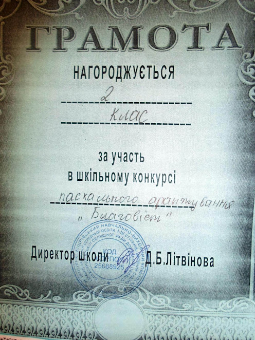 Грамота за участь та особливу активність в шкільному конкурсі